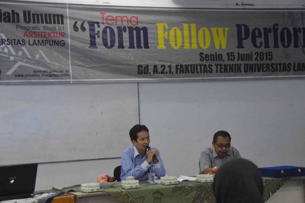 Kali ini Program Studi S1 Arsitektur Unila, mengadakan Kuliah Umum dengan Tema: