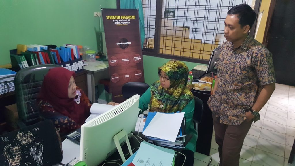 Dan hari ini, Jum’at 29 Juli 2016 telah dilakukan visitasi dan audit internal ke Program Studi S1 Arsitektur dan Program Studi D3 Arsitektur Bangunan Gedung. Terimakasih Kami ucapkan Kepada Yth. Ibu Ir. Otik Nawansih, M.P dan Ibu Dr. Sri Hastuti Noer, M.Pd. yang telah berkanan untuk mengaudit Program Studi D3 Arsitektur Bangunan Gedung dan juga Terimakasih Kami ucapkan kepada Yth. Bpk. Eko Budi Sulistio, S.Sos, M.AP. beserta Ibu Dra. Elly Lestari Rustiati, M.Sc. yang telah mengaudit Program Studi S1 Arsitektur.